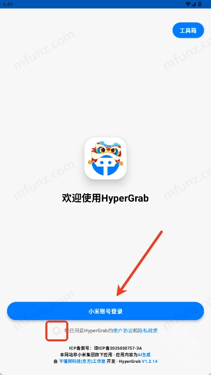 打开HyperGrab软件需要用小米账号进行登录
