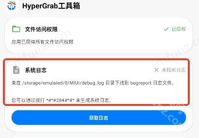 若想用hypergrab查询小米澎湃系统的推送消息,可在工具箱里开启系统日志功能。