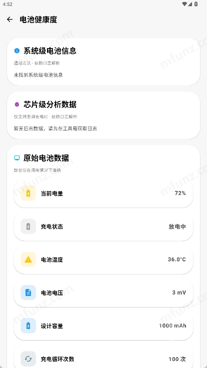 即可看到电池当前电量、充电状态、电池温度等