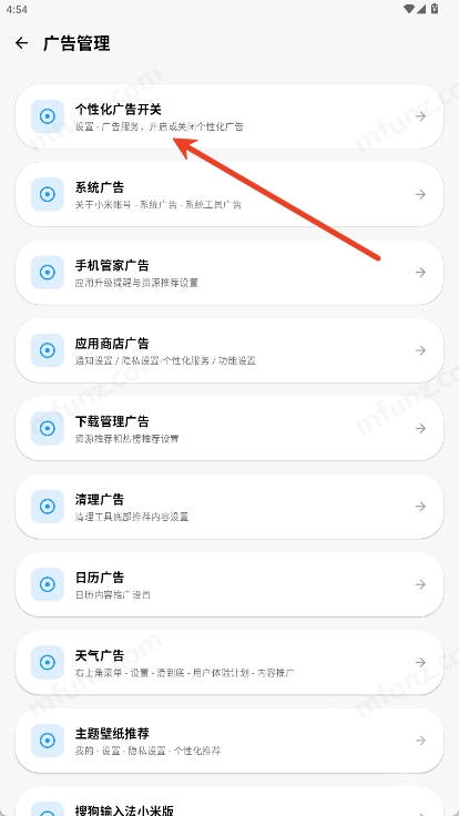 选择想要屏蔽的广告类型就可以了