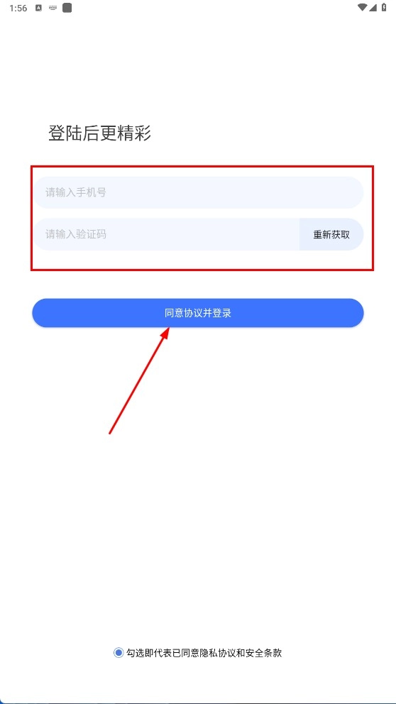 在登录页面,输入手机号码与验证码后,点击“同意协议并登录”按钮,即可完成账号登录,进而解锁更多功能权限。