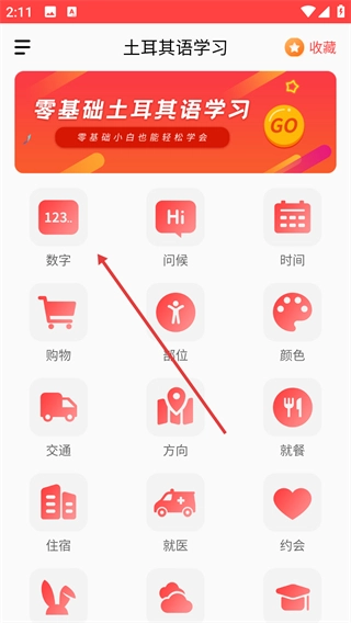点击【数字】选项,进入土耳其语数字学习页面。