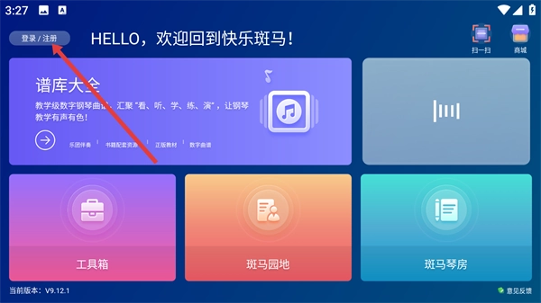 在快乐斑马的主界面上,点击左上角的【登录/注册】按钮,即可弹出登录注册的窗口。