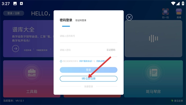 在登录弹窗里,点击【5秒立即注册】按钮,即可进入新用户注册界面。