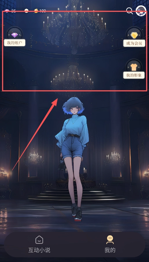 点击“我的”进入个人中心,在这里你可以管理自己的账户信息,查看成为会员的相关选项,还能找到“我的形象设置”以及互动小说收藏的内容。