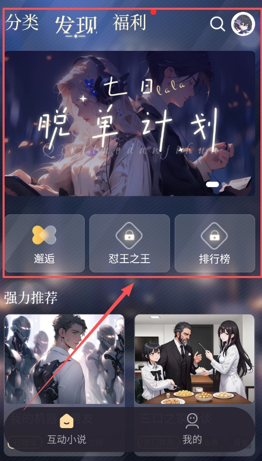 想找感兴趣的小说可以去浏览分类和发现页面,那里会按七日、肥草汁菜等标签来推荐相关内容。