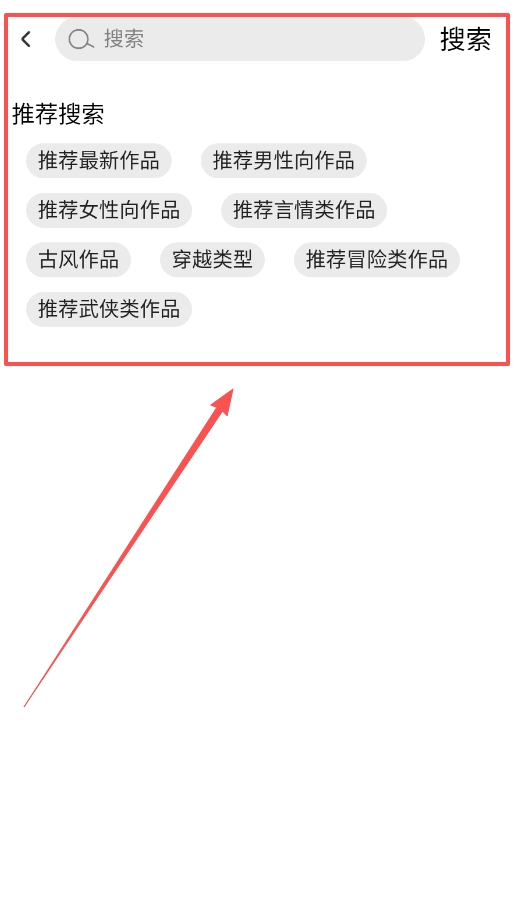 要是不清楚该读些什么,不妨试试推荐搜索功能。这里不仅按照最新作品、男性向、女性向等类别进行了划分,还提供古风、穿越、冒险等题材供你挑选。