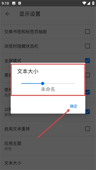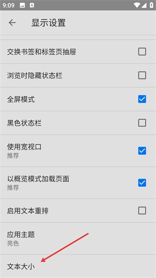 在显示设置页面找到并点击【文本大小】选项,随即会弹出用于调整文本大小的窗口。