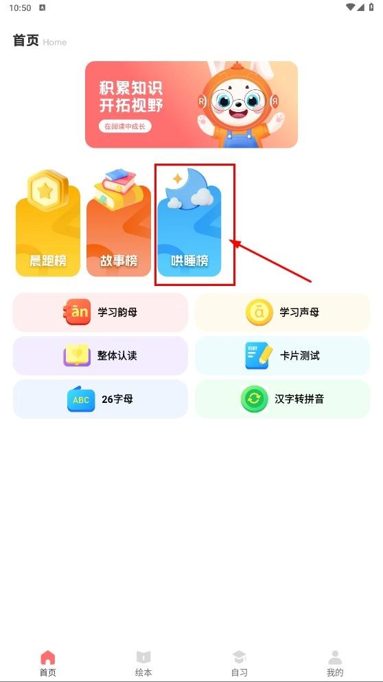 在首页找到并点击【哄睡榜】功能图标,即可进入哄睡内容列表页面。