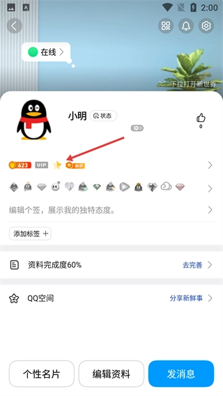 在个人资料页面点击【勋章】选项,就能进入我的等级页面。