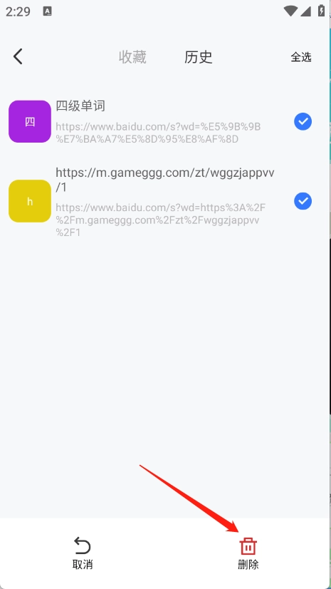 选择要删除的历史记录即可。