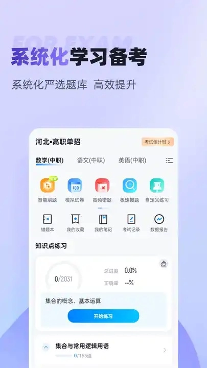 根据最新考纲要求,我们为考生提供语文、数学以及十大考试类别的考点专项训练和智能组卷服务,支持依据考点、难度进行精准化练习,助力考生实现高效备考目标。