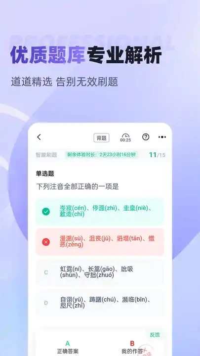 界面设计简洁明了,操作逻辑直观易懂,考生能轻松定位到所需功能,无需花费时间进行复杂学习,即可快速投入备考状态。