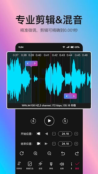 专业剪辑与混音工具支持毫秒级精准操作,用户能通过剪切等微调编辑,实现音频细节的完美处理,同时满足多轨混音的需求。