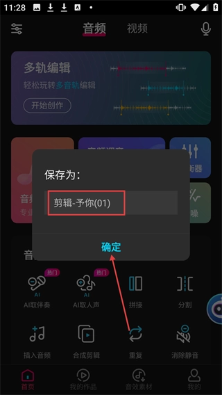 在保存弹窗里,确认好剪辑后的音频文件名,点击【确定】按钮,就能完成音频剪辑的保存步骤。