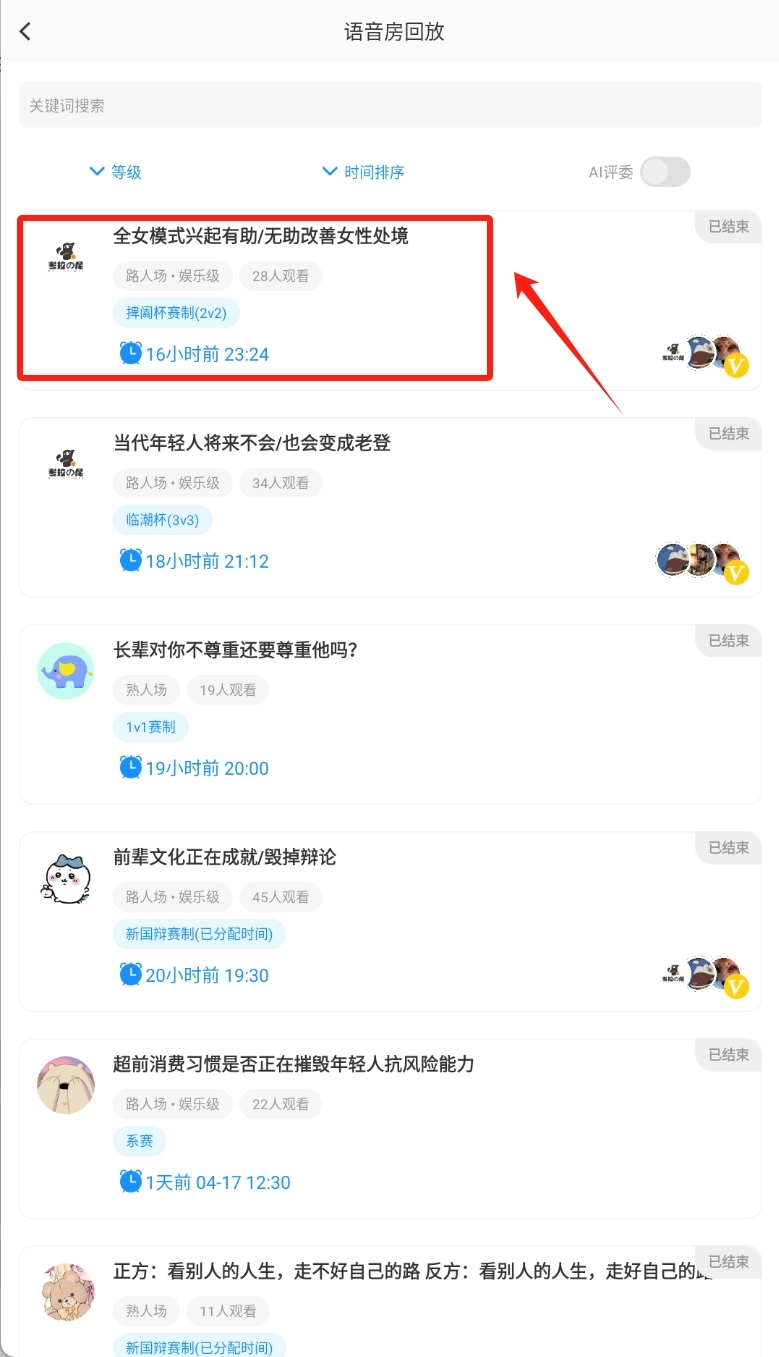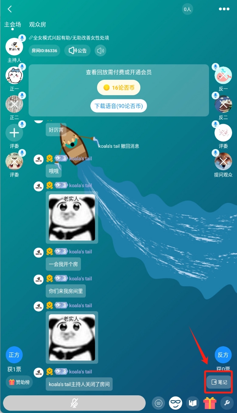多样化讨论模式,包含正式辩论、推理游戏等交流形式。支持即兴讨论与预约讨论两种方式,提供旁听功能便于学习观摩。