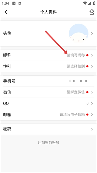 点击【个人资料】,进入个人资料页面。