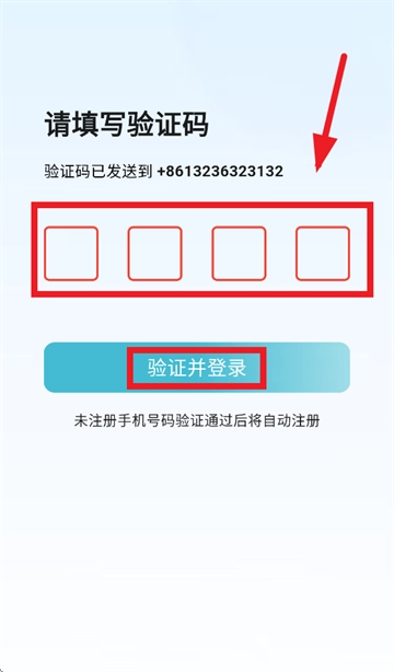输入验证码,点击“验证并登录”按钮即可完成操作;若手机号码尚未注册,验证通过后系统将自动完成注册流程。