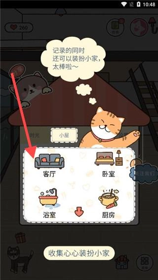 同时也有客厅、卧室、浴室等选项来装扮自己的小家