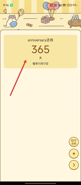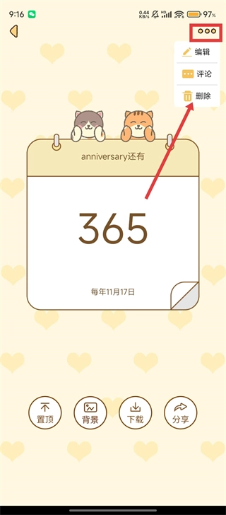 进入后能看到【anniversary】的倒计时信息,要是想删除,点击这个信息就能进入功能入口啦。