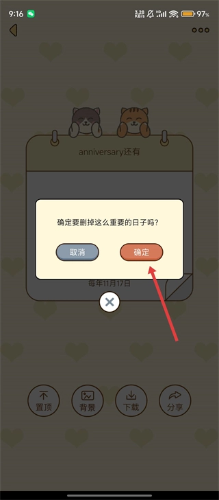 这时会弹出确认窗口,点击【确定】按钮,就可以成功删除这个纪念日啦。