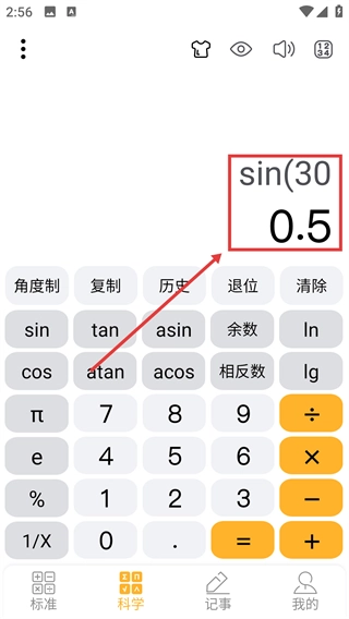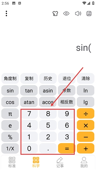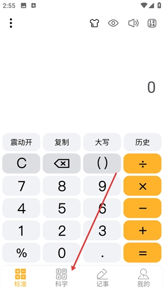 点击底部【科学】选项,切换到科学计算器界面。