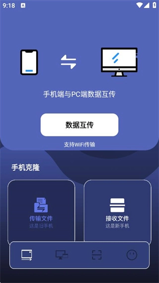 在首页点击数据互传,进入数据传输页面。