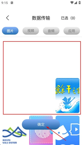 在数据传输页面选择要传输的照片,点击确定。