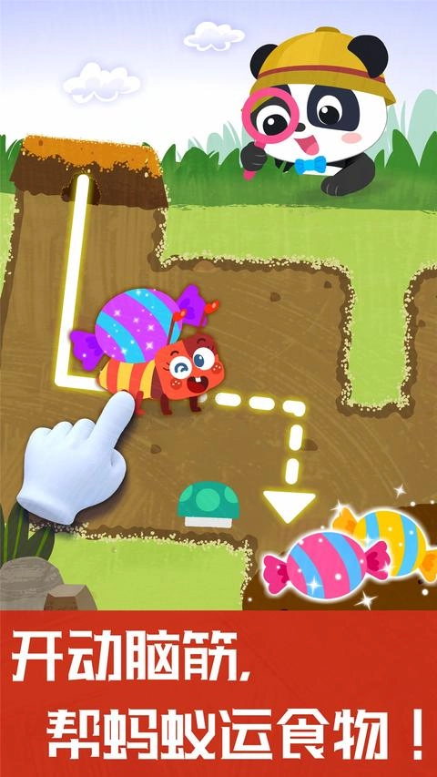小蚂蚁正准备把美食运回家呢!宝宝来帮小蚂蚁规划一条合适的路线,让糖果和苹果都能顺利被运回去吧!土拨鼠不小心迷路了,宝宝仔细观察一下,带着土拨鼠穿过岩石迷宫,顺便收集路上的坚果,一起回到它的洞里哦。