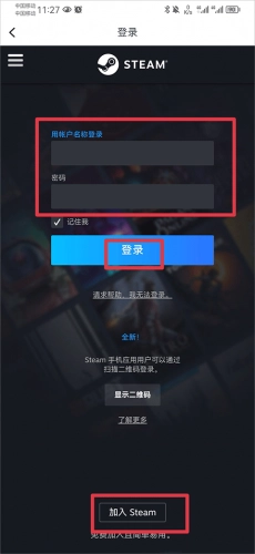 2、进入后将账号和密码输入并点击登录,若没有账号可点击下方加入steam注册账号。