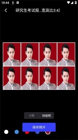 比如,要是想把底色改成红色,选好红色后点击【保存照片】,就能把处理完的照片存到手机里了。