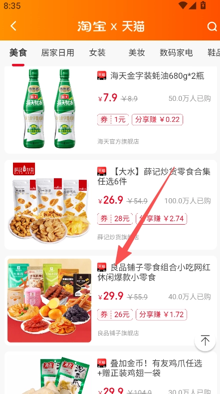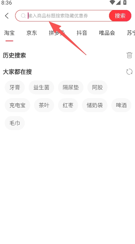 在搜索栏输入商品标题,搜索隐藏优惠券。