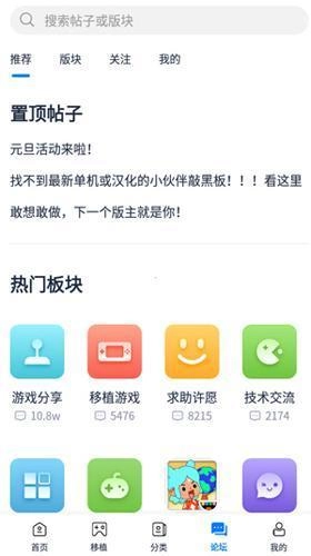 安装爱吾游戏宝盒的最新版本后启动软件,界面上会呈现出首页、移植、分类、论坛和我的这五个板块。