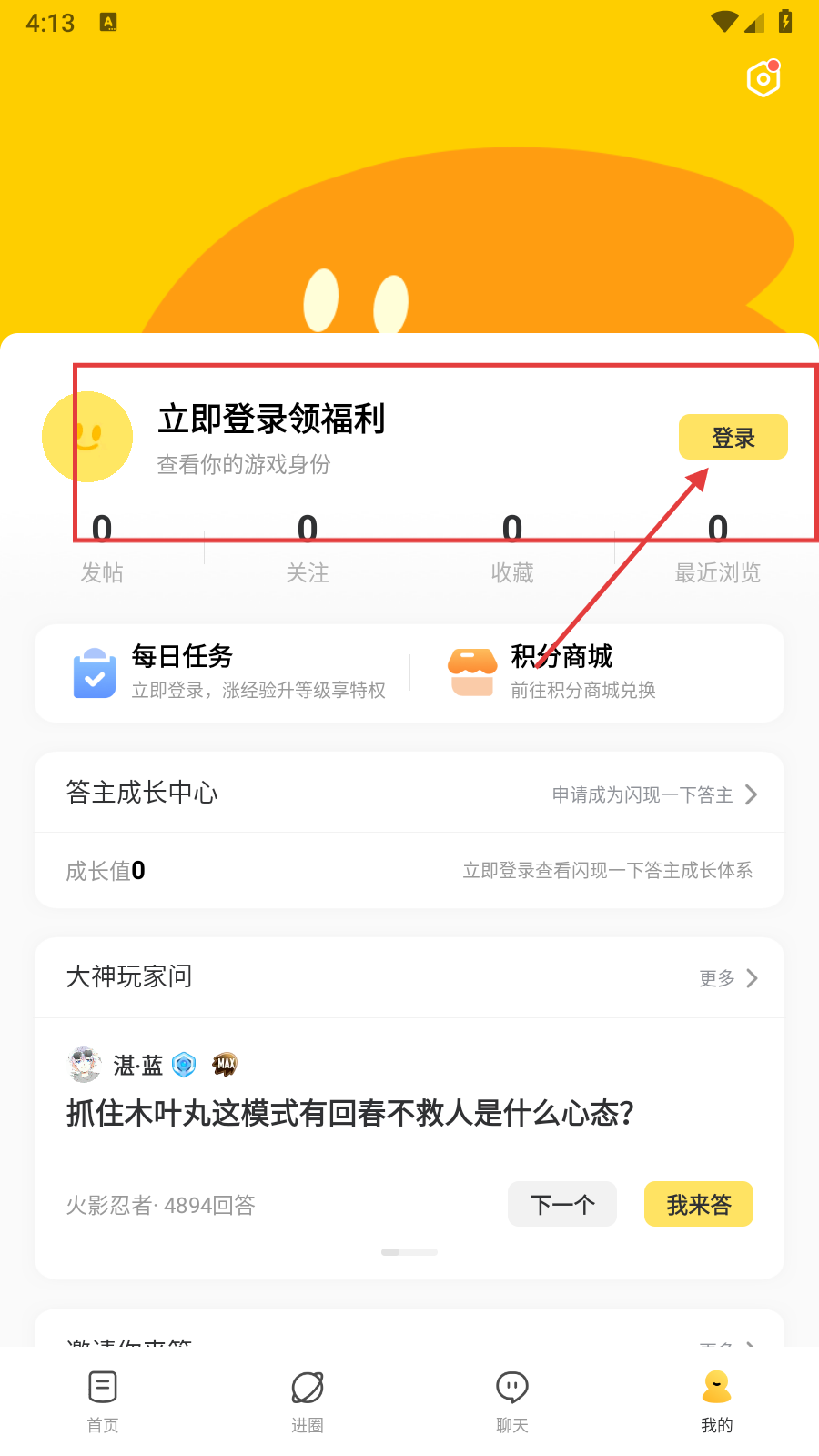 打开游戏社区类软件后,点击右下角的【我的】按钮,即可进入个人页面。
