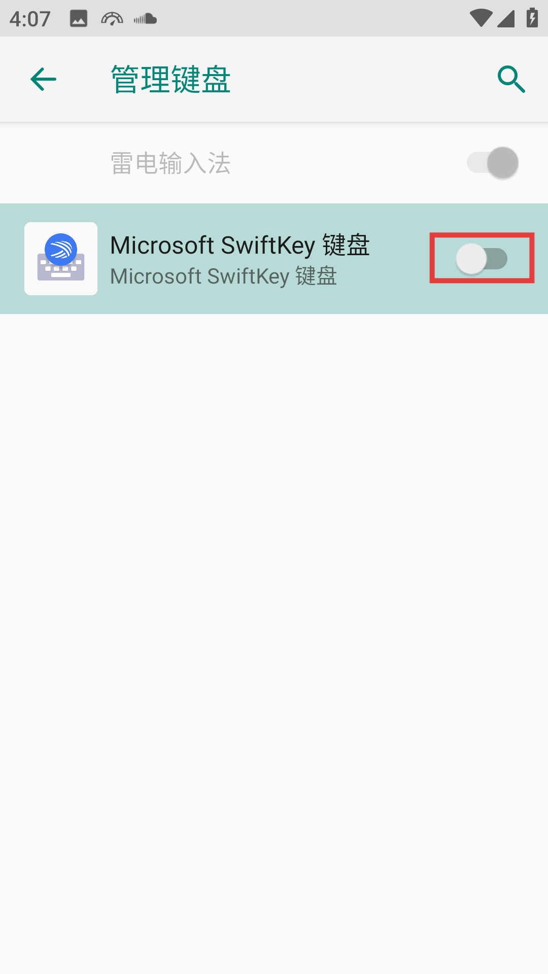 点击【让我们设置SwiftKey】按钮,即可进入键盘管理页面。