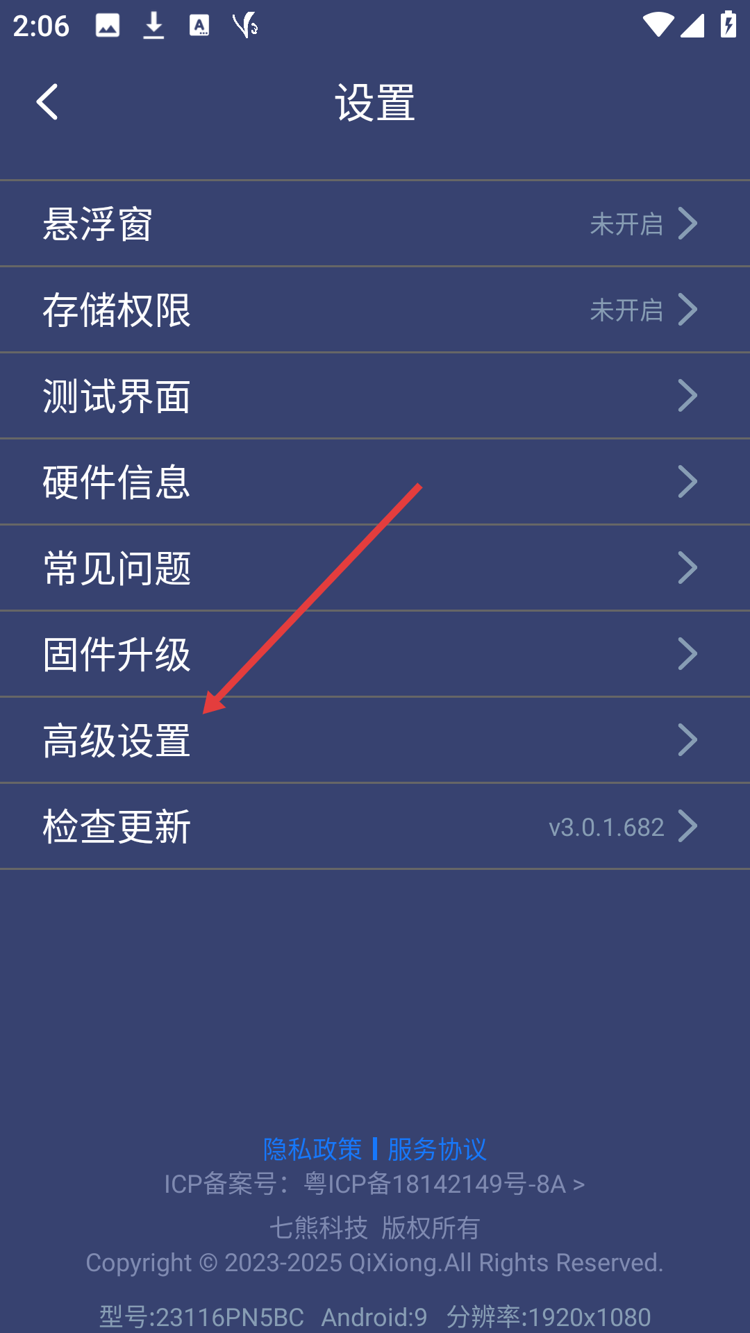 在设置页面里点击【高级设置】选项,即可进入高级设置页面。