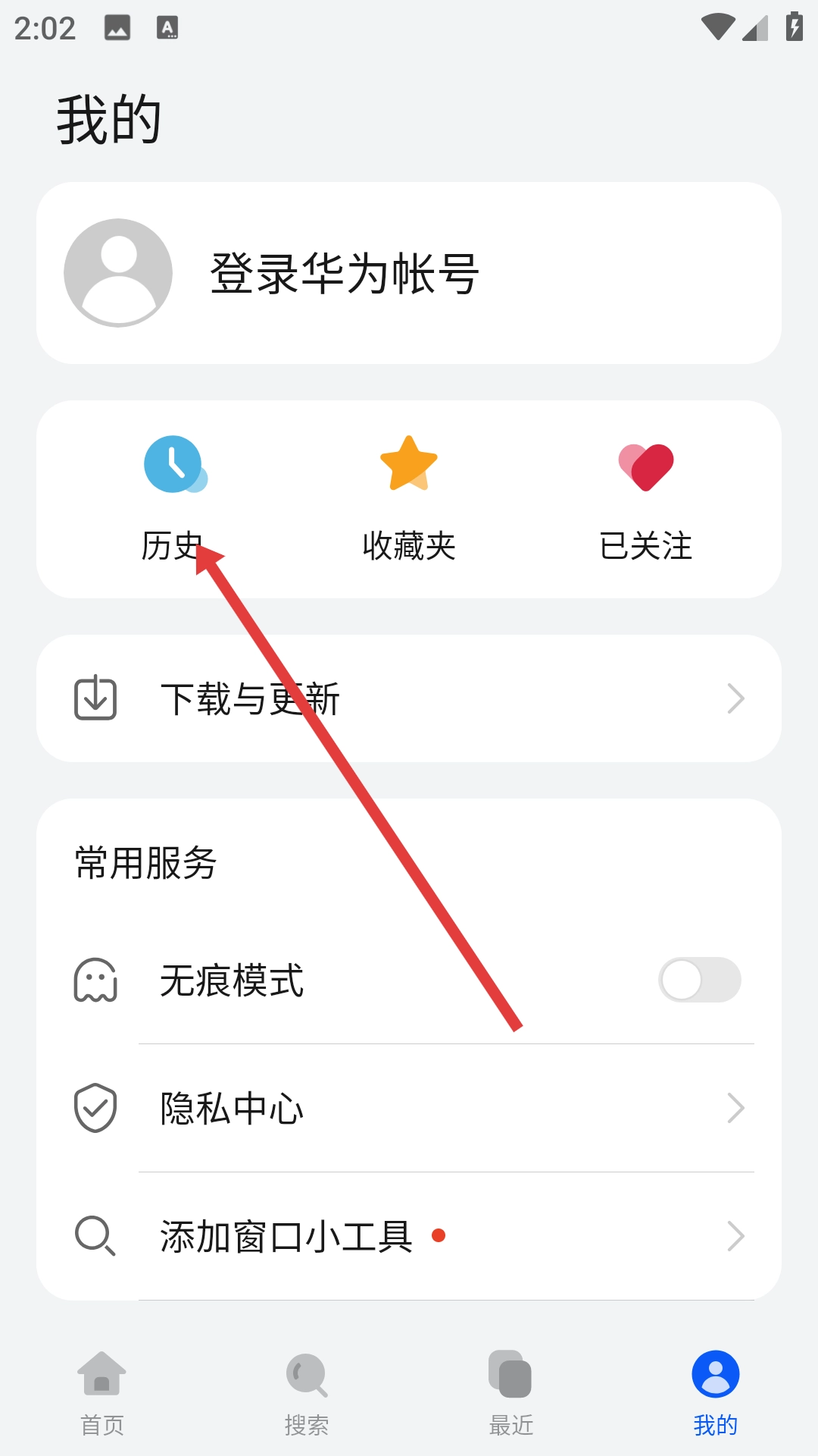 在【我的】页面里,点击【历史】选项,就能查看过往的浏览历史记录。