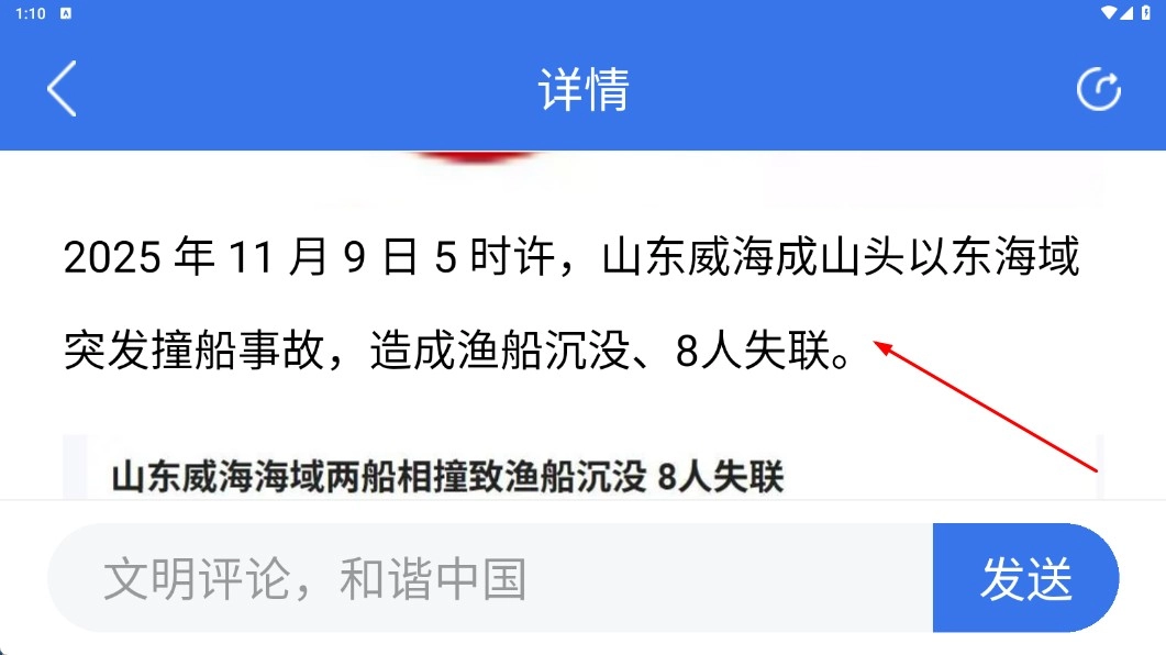 在全站资讯页面,点击【聚焦船舶倾覆新闻条目】,查看详情内容。