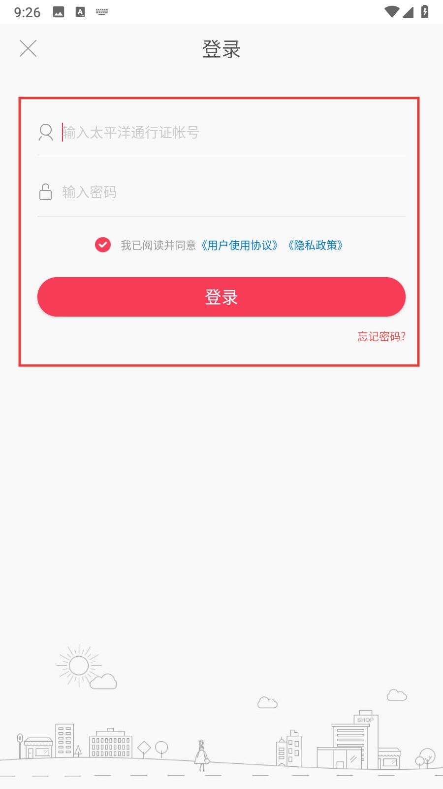 也可以选择账号密码登录的方式,输入太平洋通行证账号与密码,勾选同意相关协议后,点击登录按钮即可完成登录操作。