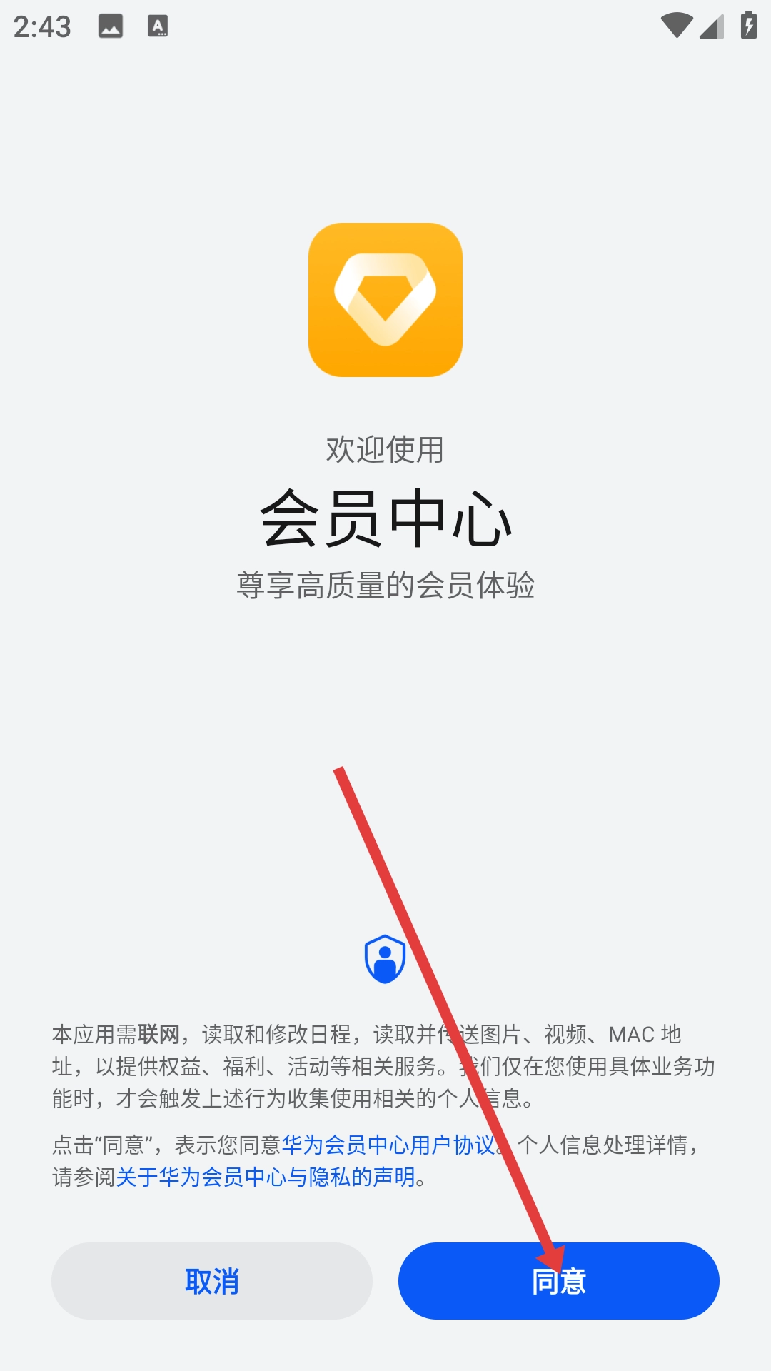 要继续使用会员相关功能,请在【会员中心】的服务协议页面点击【同意】按钮。