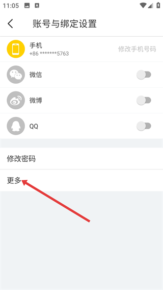 在账号与绑定设置页面点击【更多】选项,就能进入注销账号的选项页面。