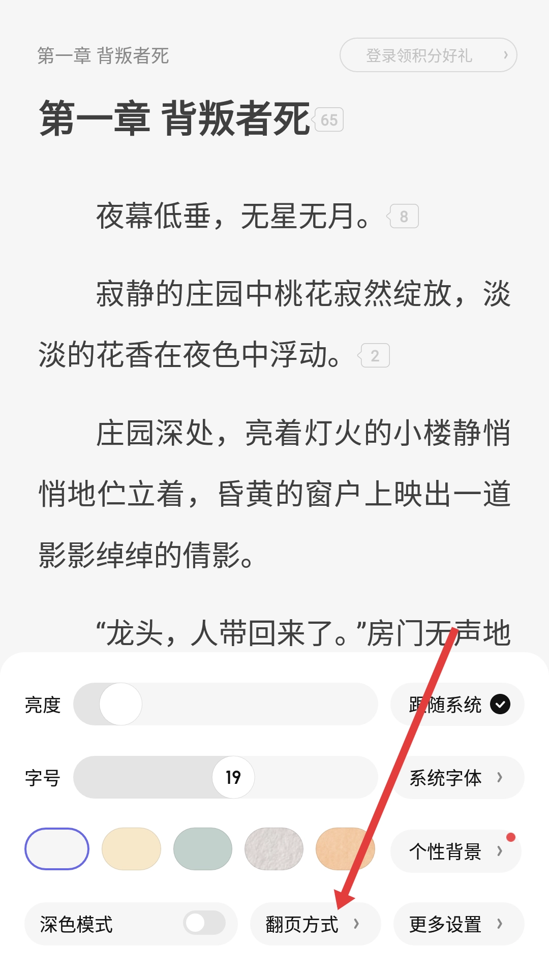 在设置选项栏里,找到并点击【翻页方式】这一选项,就能依据自身需求对翻页方式进行设置。