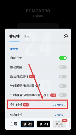 在设置页面里找到【专注时长】这个选项,接着对它进行设置,比如可以设置成25分钟。