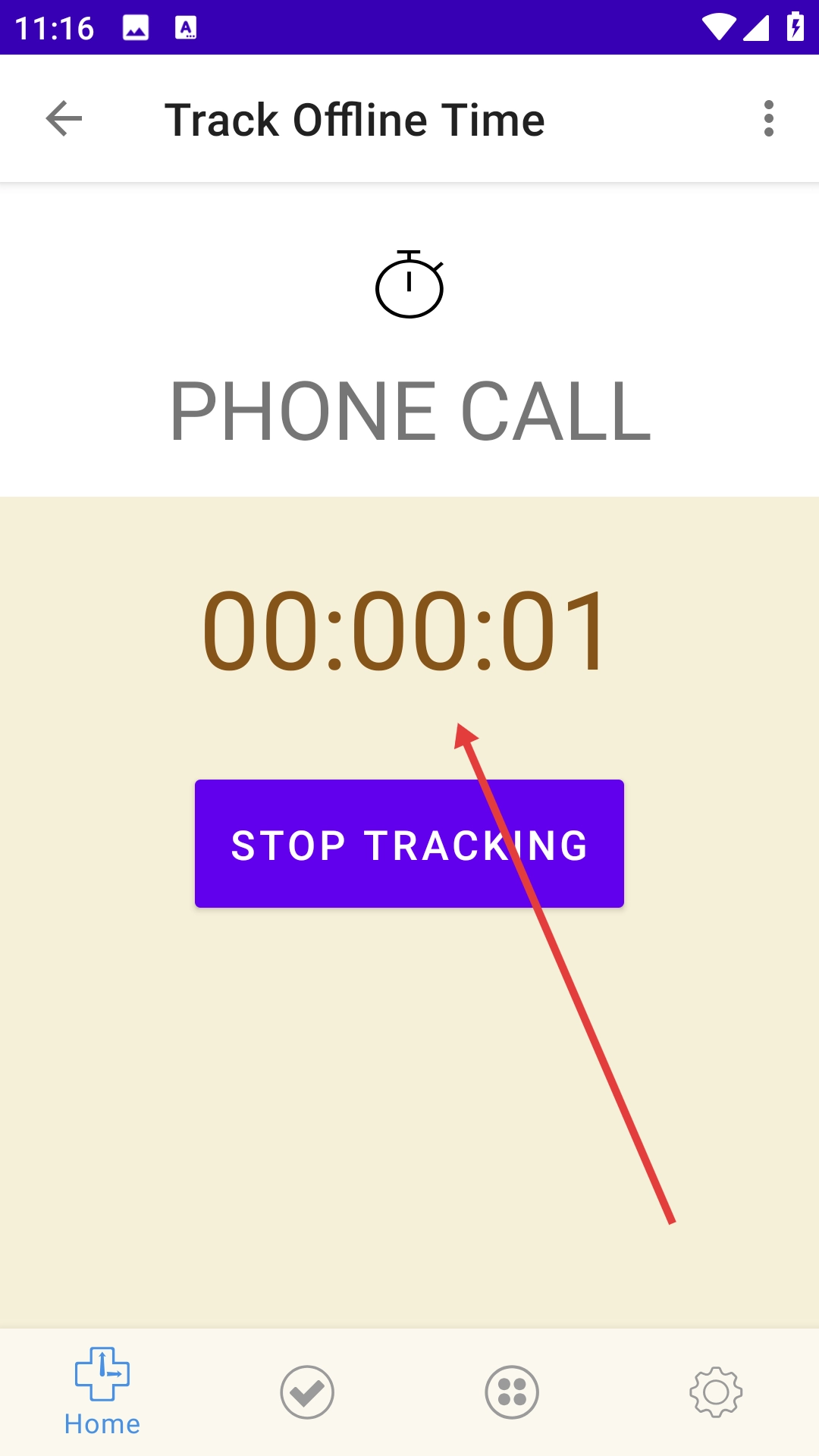 追踪启动后,页面会展示当前活动的计时时长,点击【STOP-TRACKING】按钮即可结束追踪。