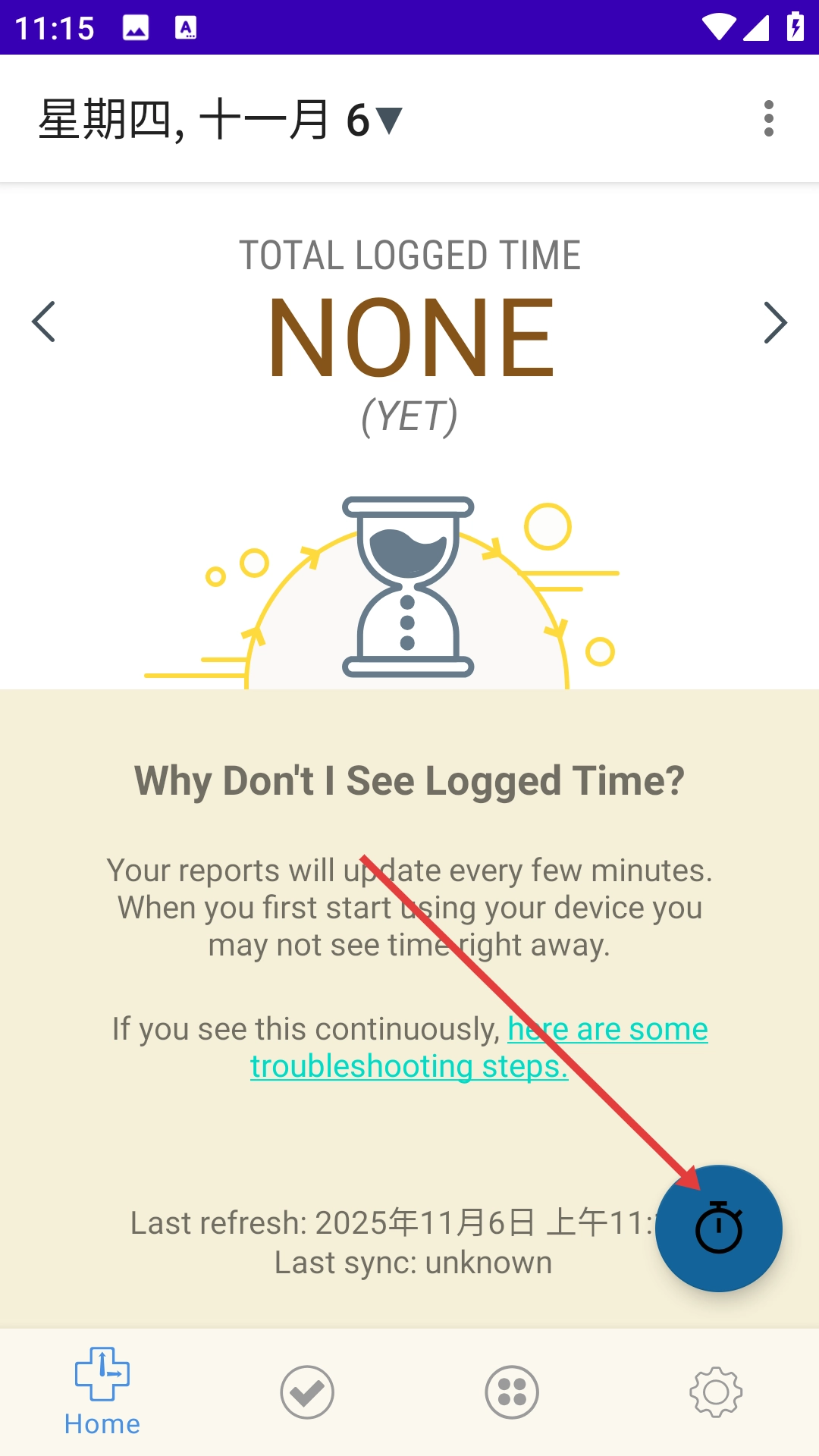 点击右下角蓝色的计时按钮,即可进入离线时间追踪页面。