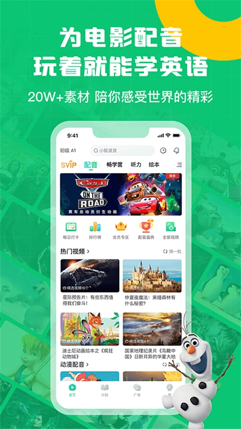 英语趣配音是一款聚焦英语口语学习的在线教育应用,借助给各类视频配音的形式,调动用户开口说英语的积极性,进而提高口语水平。