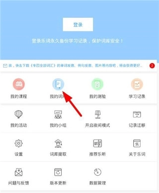 2、点击个人页面中的“我的词库”选项,进入词库页面中