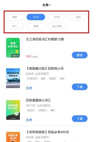 这里有海量的考试干货课程,无论是英语四六级,还是雅思、托福词汇,你都能在这里找到。