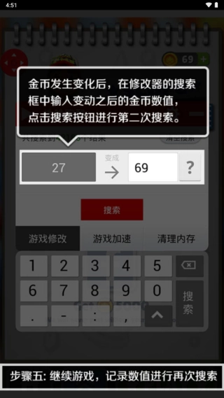 当金币数量出现变动时,在的搜索框里输入变化后的金币数值,接着点击搜索按钮开展第二次搜索。
