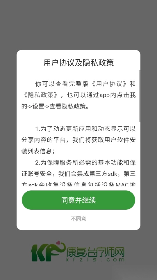 首先打开应用点击“同意并继续”按钮来进入中。